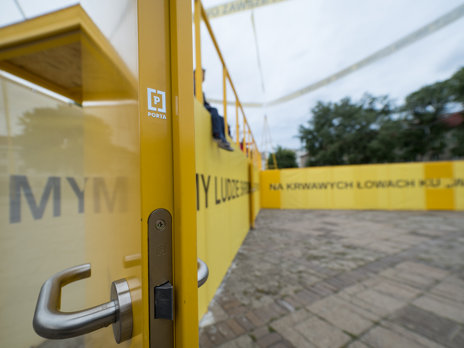 Cztery maszty, opasane ogromną żółtą wstęgą, a poniżej konstrukcja składająca się z czterech ramion tworzących symbol „X" pozwalająca wejść do korytarzy przez otwarte drzwi oraz wspiąć się schodami na bryłę instalacji o wysokości 2,2 m. Stworzona przez Roberta Rumasa instalacja zatytułowana „X” zachęca, by na Stare Miasto i jego historię spojrzeć z innej perspektywy. Zarówno na bokach konstrukcji, jak i na wstęgach wypisano cytaty z „Kwiatów polskich” Juliana Tuwima. Bezpośrednią inspiracją dla dzieła były archiwalne fotografie, prezentujące most dla pieszych nad ul. Zgierską, zlokalizowany w czasie wojny nieopodal Starego Rynku, a prowadzący do getta. W zamyśle artysty instalacja ma się stać dygresją do polskich mitów wielkości oraz jakże aktualnego współcześnie tematu uchodźctwa. Jest to zatem opowieść o historii miejsca, w którym oddziałuje instalacja, ale też odniesienie do niezmiennie istotnych pytań o „innego”.