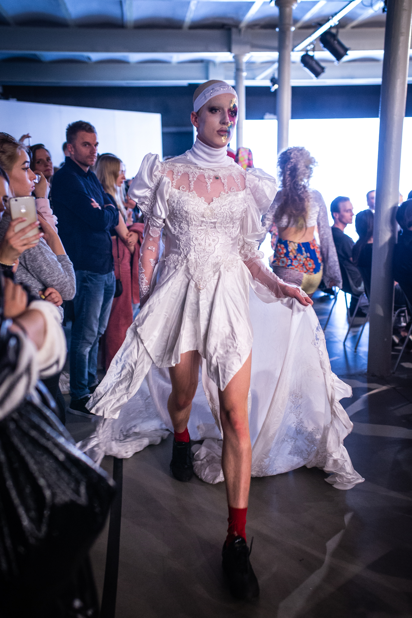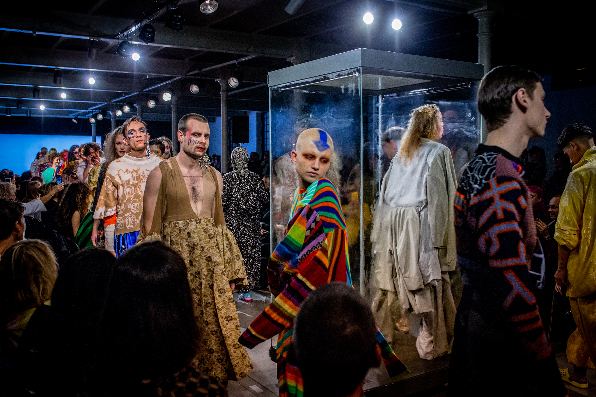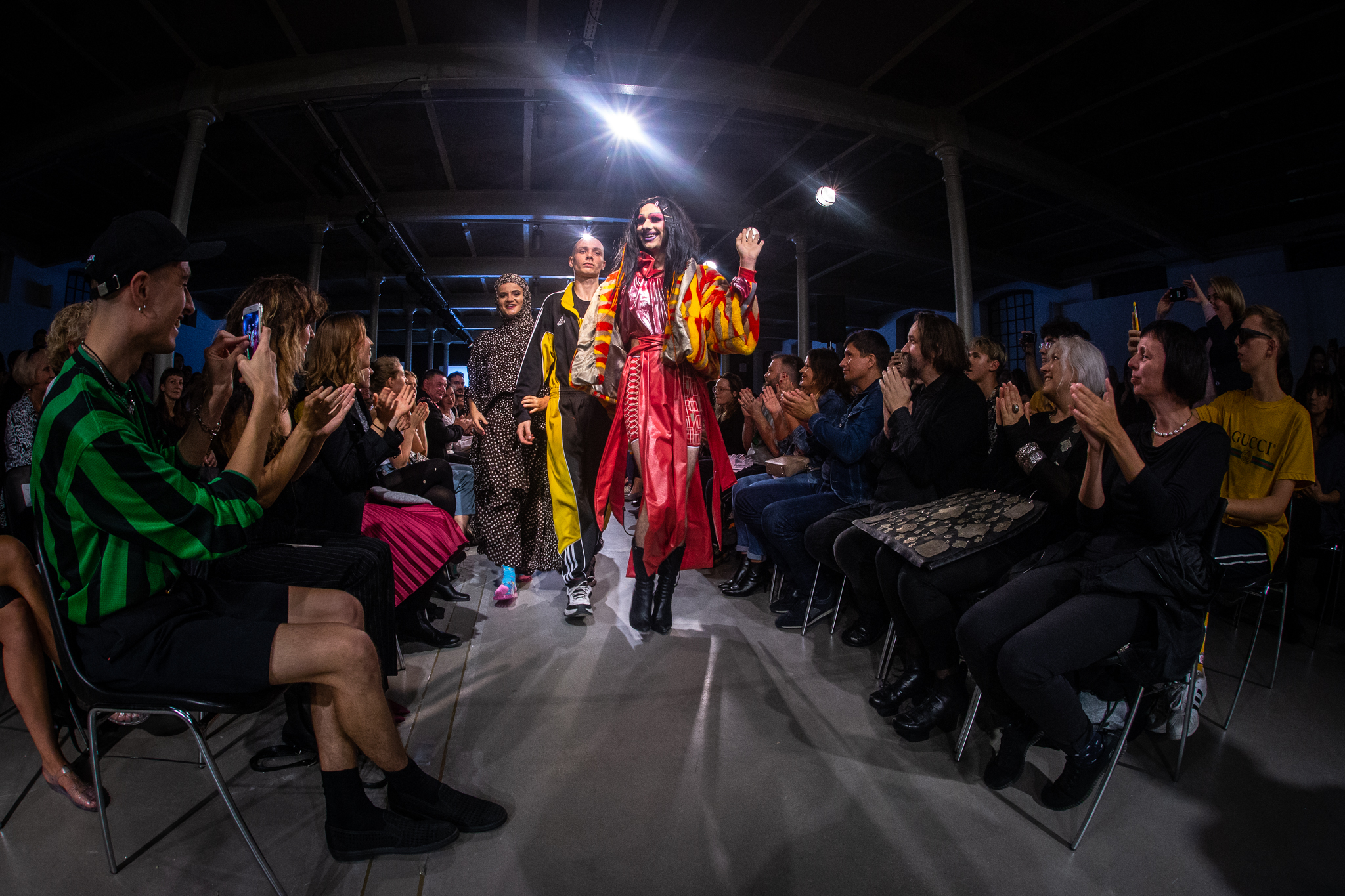 Tłumnie zebrana publiczność pokazu wybrala się wraz z artystą w modową podróż poprzez Łódzką Dzicz: sklepy z odzieżą używaną, miejscowe targowiska oraz skansen meblościankowy Domu Mody Limanka.