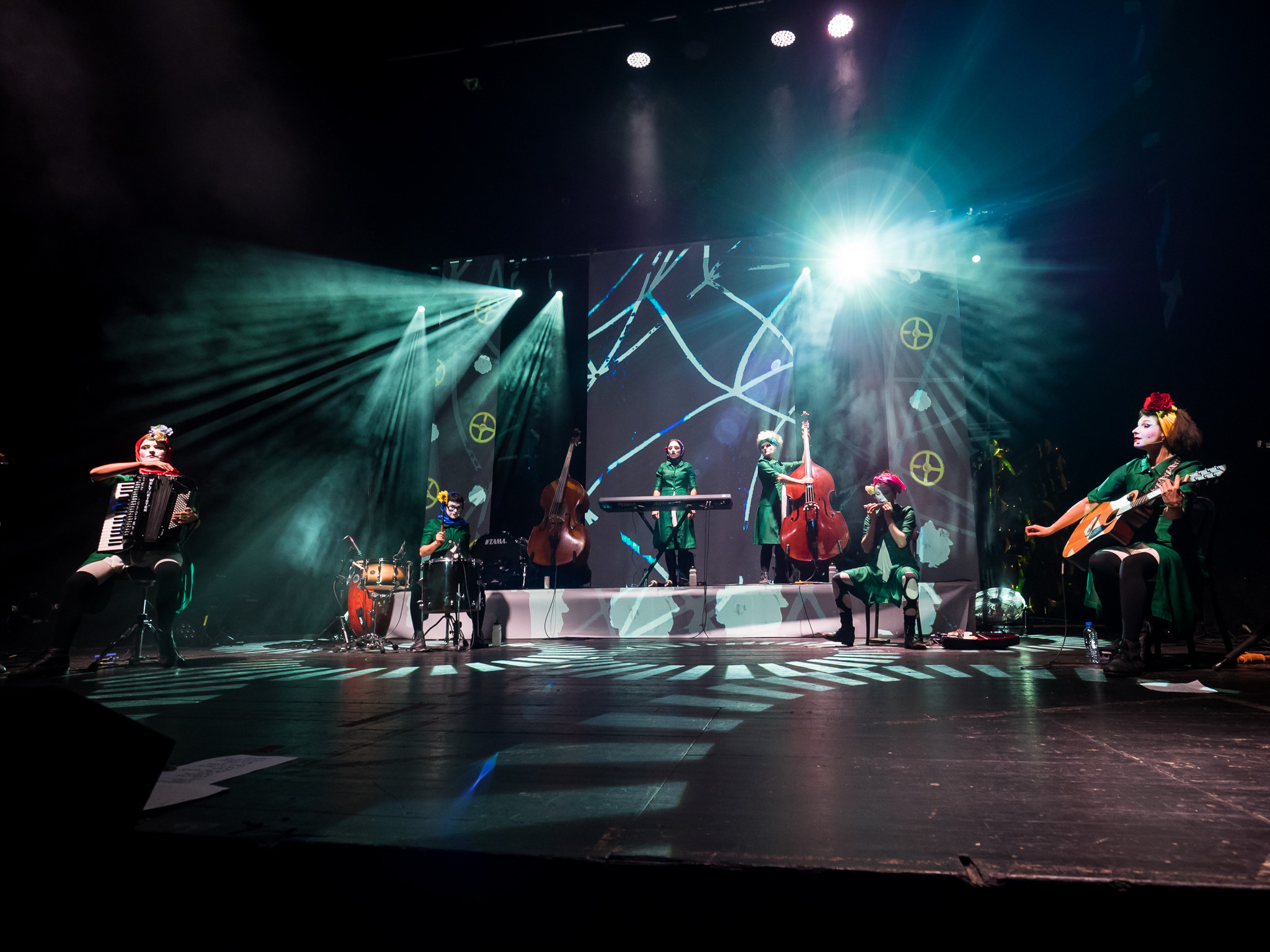 To było energetyczne połączenie teatru, kabaretu, burleski, słowa mówionego, tradycyjnego śpiewu, punka, tańca i sztuk wizualnych. Dakh Daughters śpiewają po ukraińsku, rosyjsku, angielsku, francusku i niemiecku. Siedem kobiet, piętnaście instrumentów: od fletu po trombitę, do tego łączenie stylów i dźwiękowe kolaże – wszystko to sprawiło, że właściwie każdy utwór w czasie koncertu to był miniperformans, zbudowany wokół ikonicznyc tekstów autorów takich jak Taras Szewczenko, Szekspir, Josif Brodski czy Charles Bukowski.