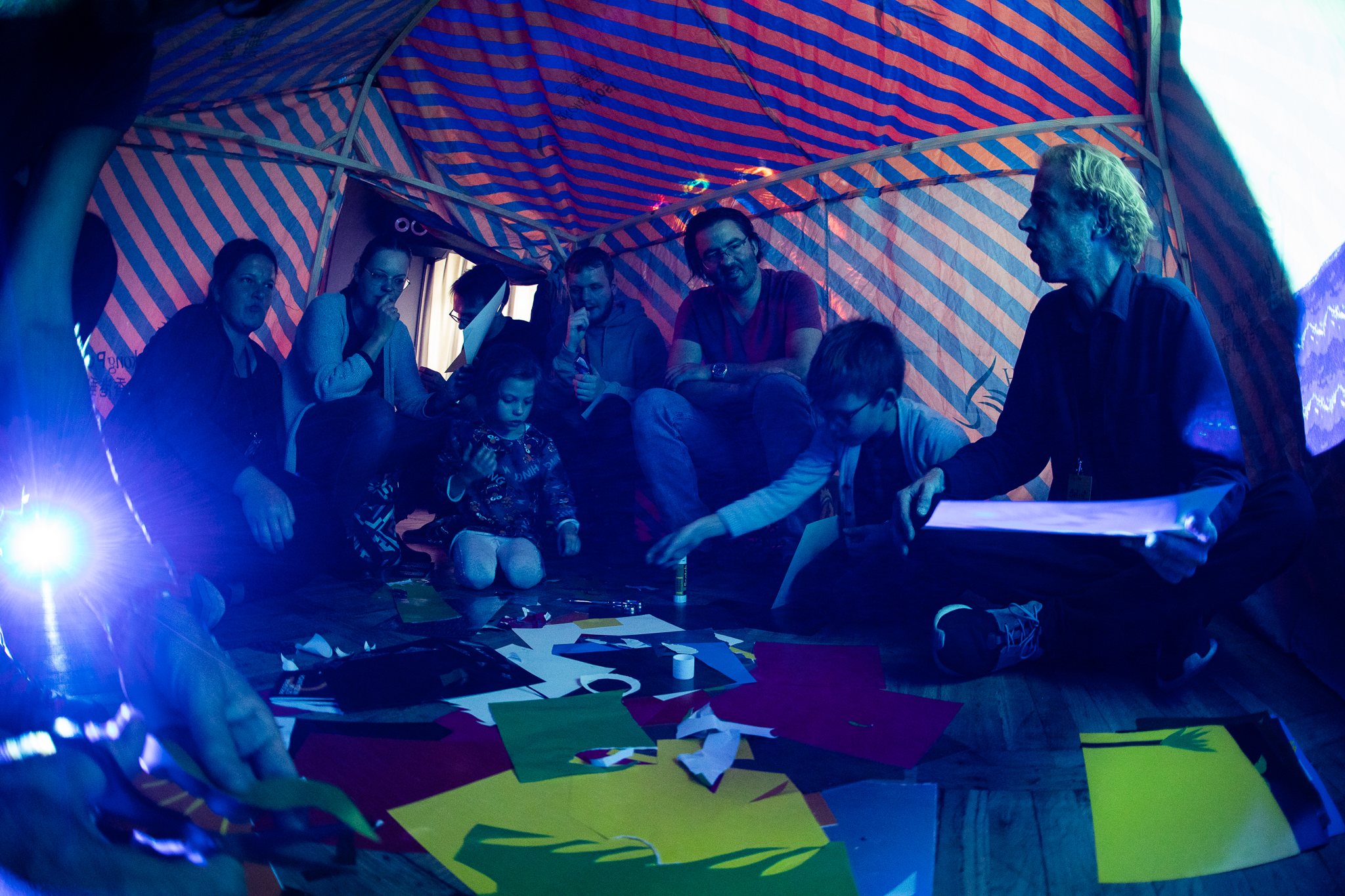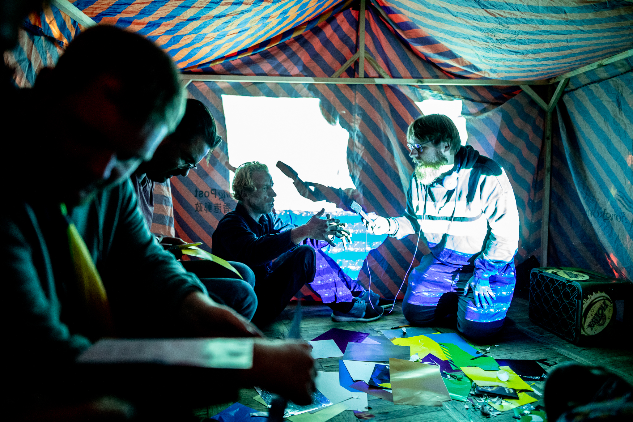 Badający zagadnienia krainy snów i ziemi obiecanej twórca rozstawił u brzegu cyfrowego morza beduiński namiot, w którym otworzył przestrzeń dla dyskusji i rozmowy z przedstawicielami różnych kultur. Nagrane wypowiedzi po zakończeniu wydarzenia artysta opublikuje w ramach internetowej odsłony projektu. Fot. HAWA