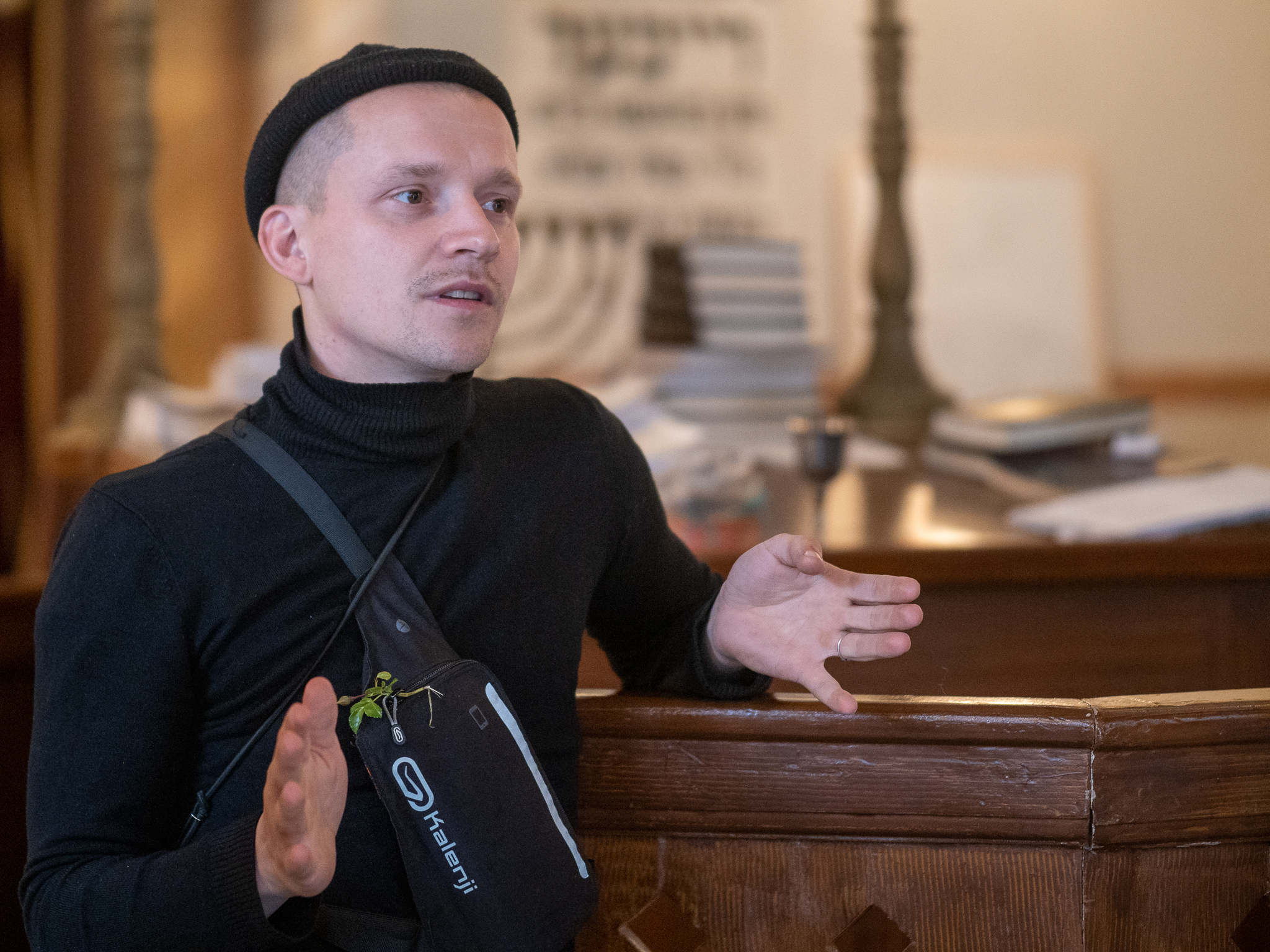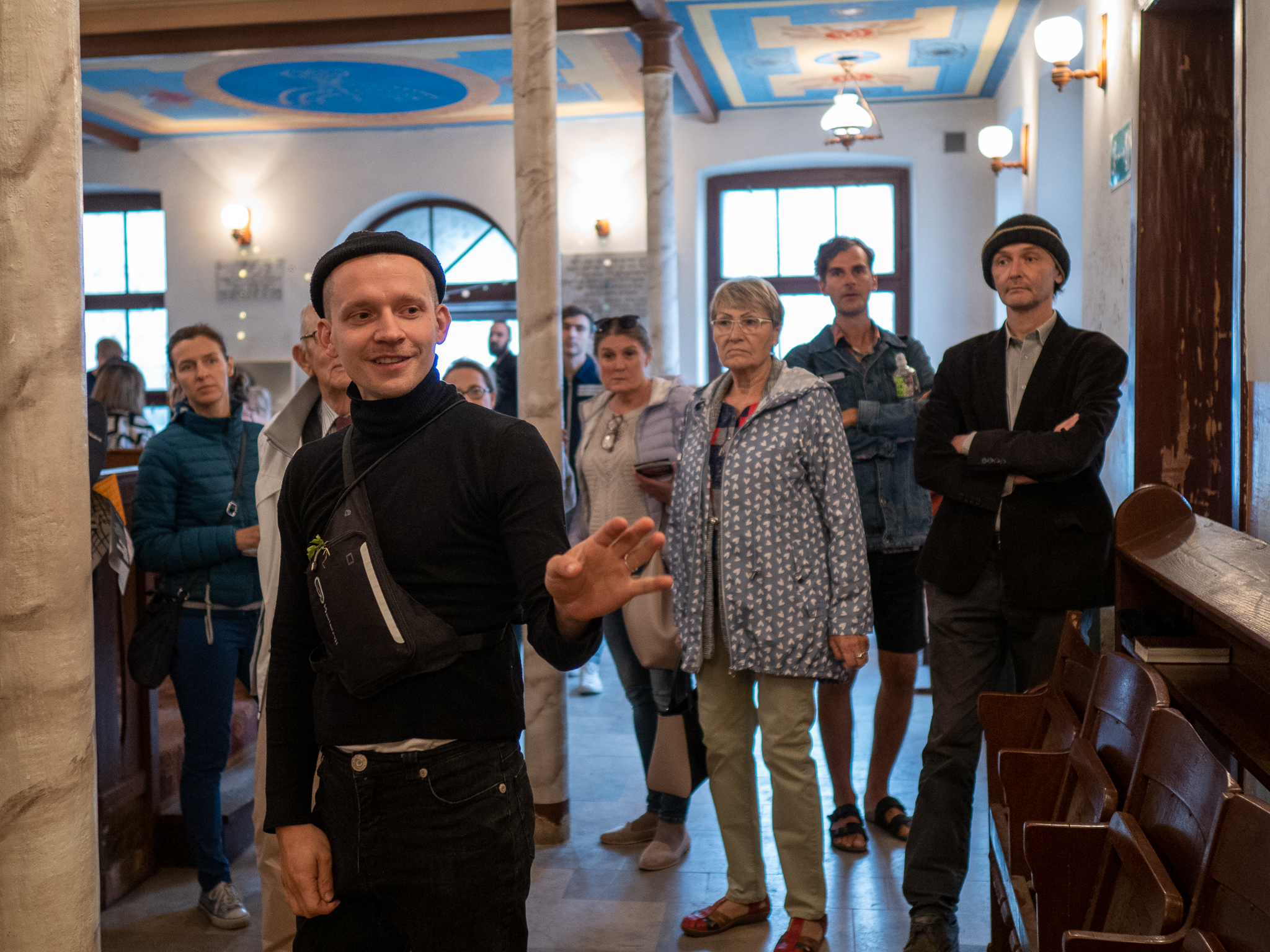W Synagodze Reicherów przestrzeń sacrum weszła w dialog ze sztuką za sprawą wystawy Kamila I. Artysta bada życie za pomocą fotografii, ale w Łodzi zaprezentował rysunek. Bohaterem opowieści uczynił rosyjskiego pisarza o pseudonimie Gorzki, autora stepowych baśni o wężu, pysznym człowieku-orle i mężczyźnie, co serce swe oddał, by oświetlić drogę. Fot. Mikołaj Zacharow